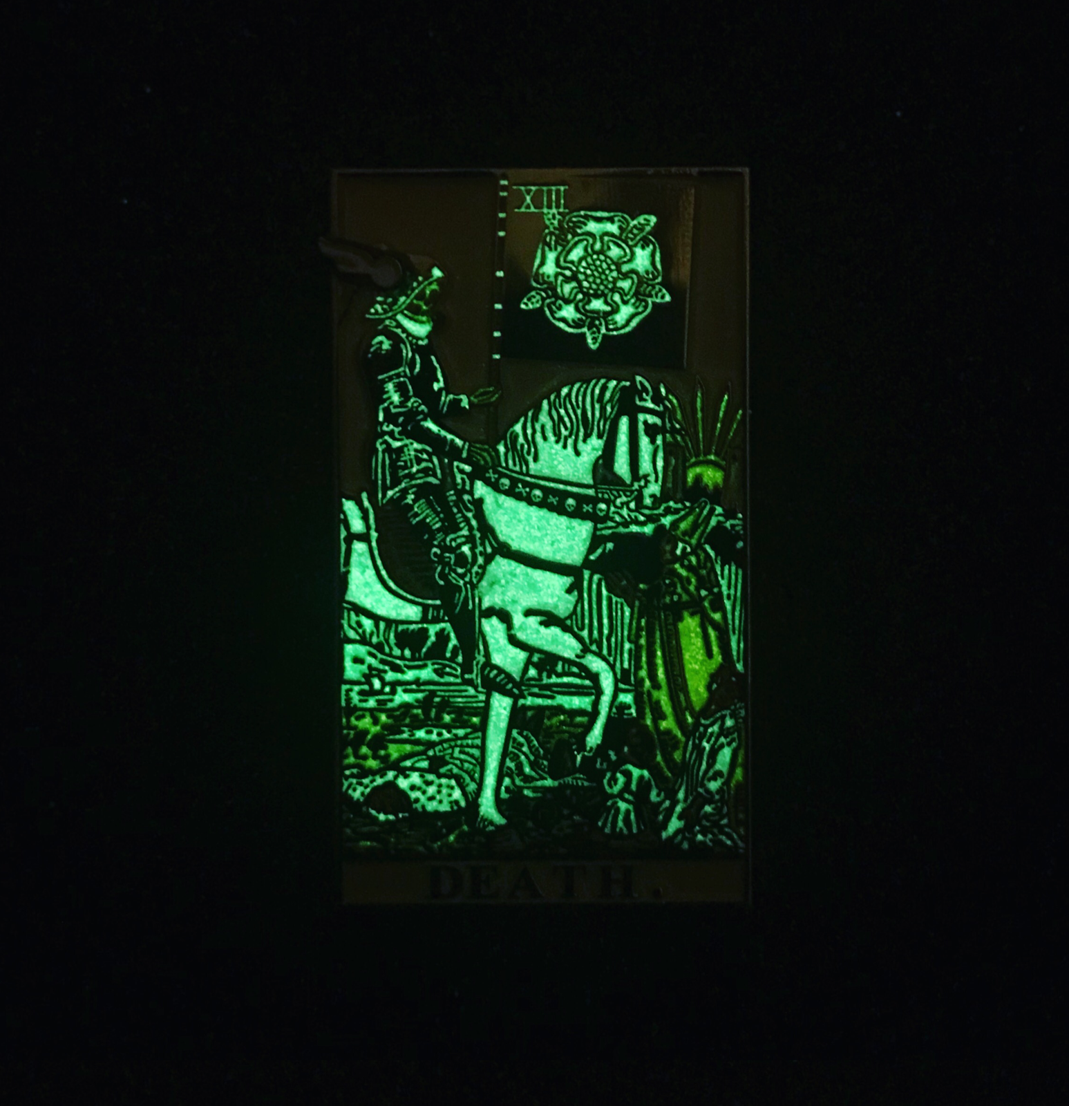 - Glow in the dark pin with Moving helmet shield