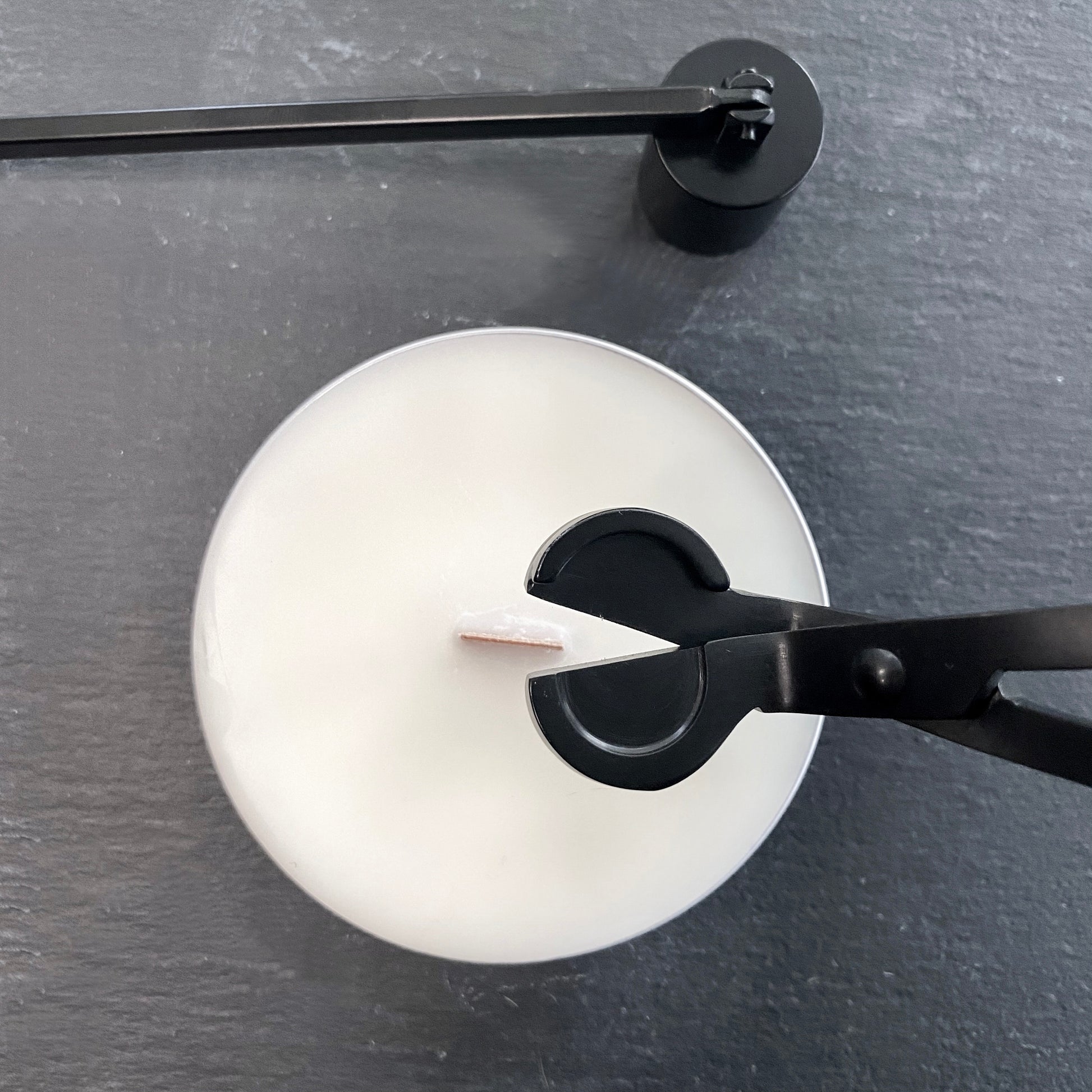 Our kit comes with angled wick trimmers and a snuffer for caring for your candles.