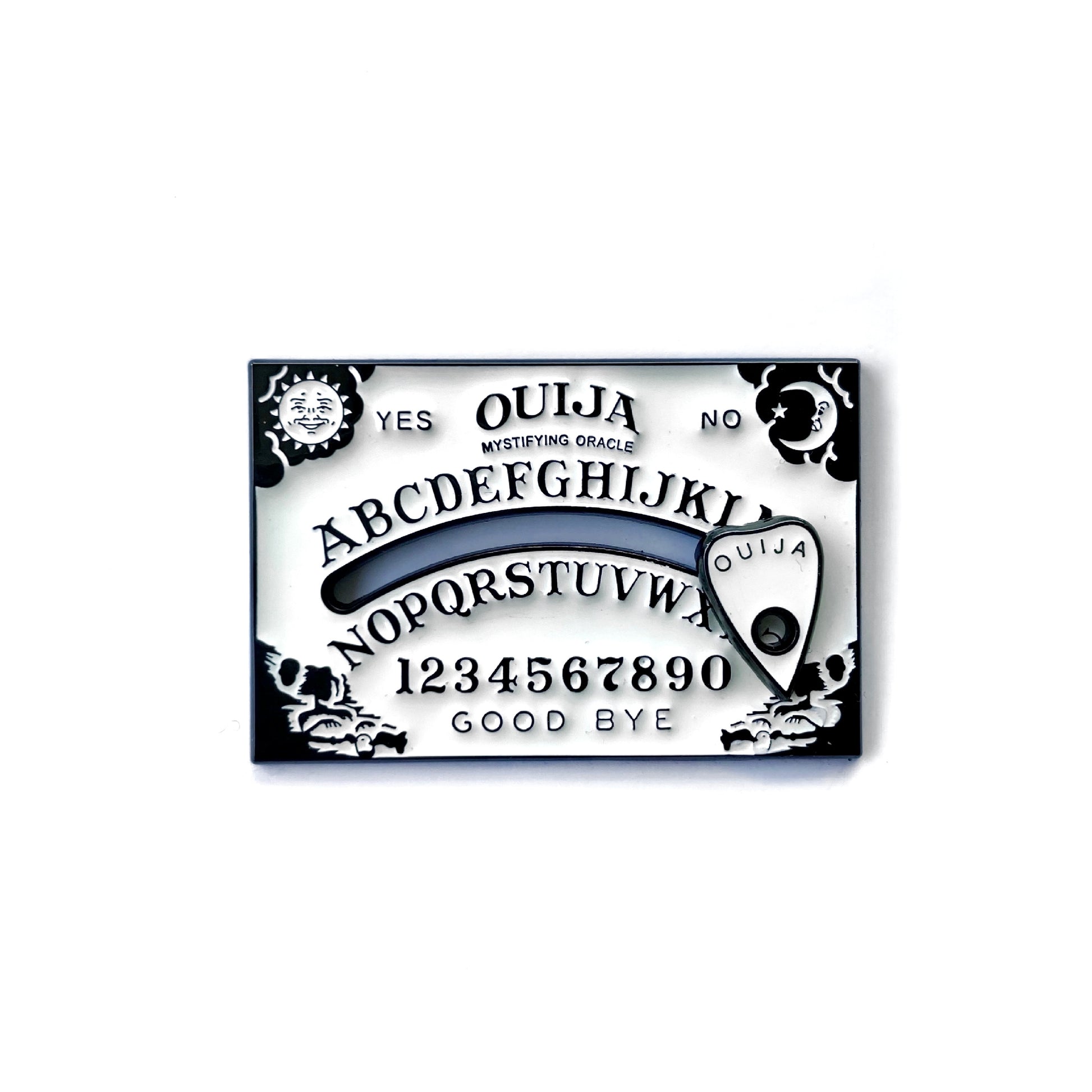 A Glow-in-the-dark variant of our popular Ouija pin. All letters are accessible by the moving planchette so it really is a working Ouija board!