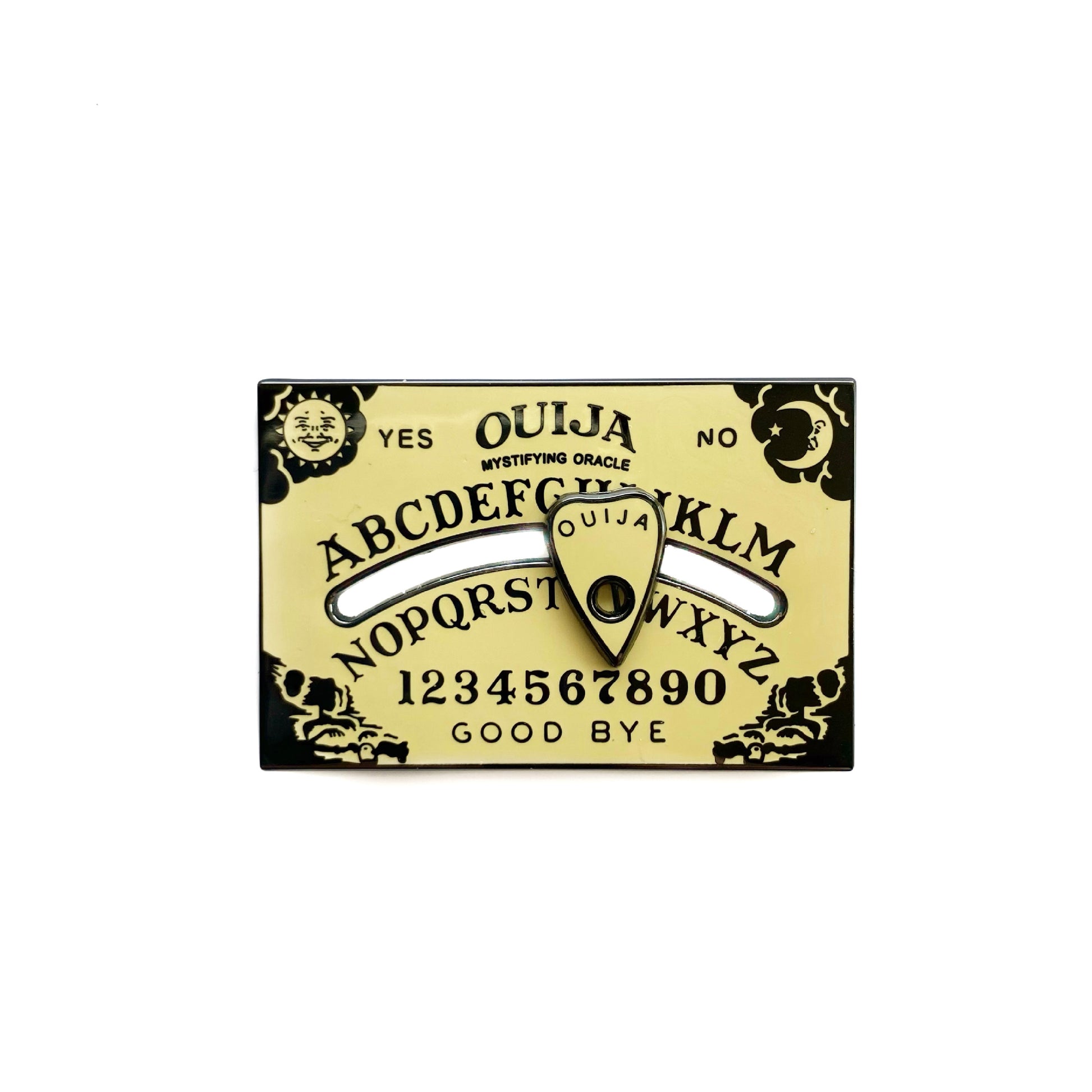 Our popular Ouija pin in hard enamel. All letters are accessible by the moving planchette so it really is a working Ouija board! Hold seances at work, in traffic, at the dentist, the possibilities are endless!