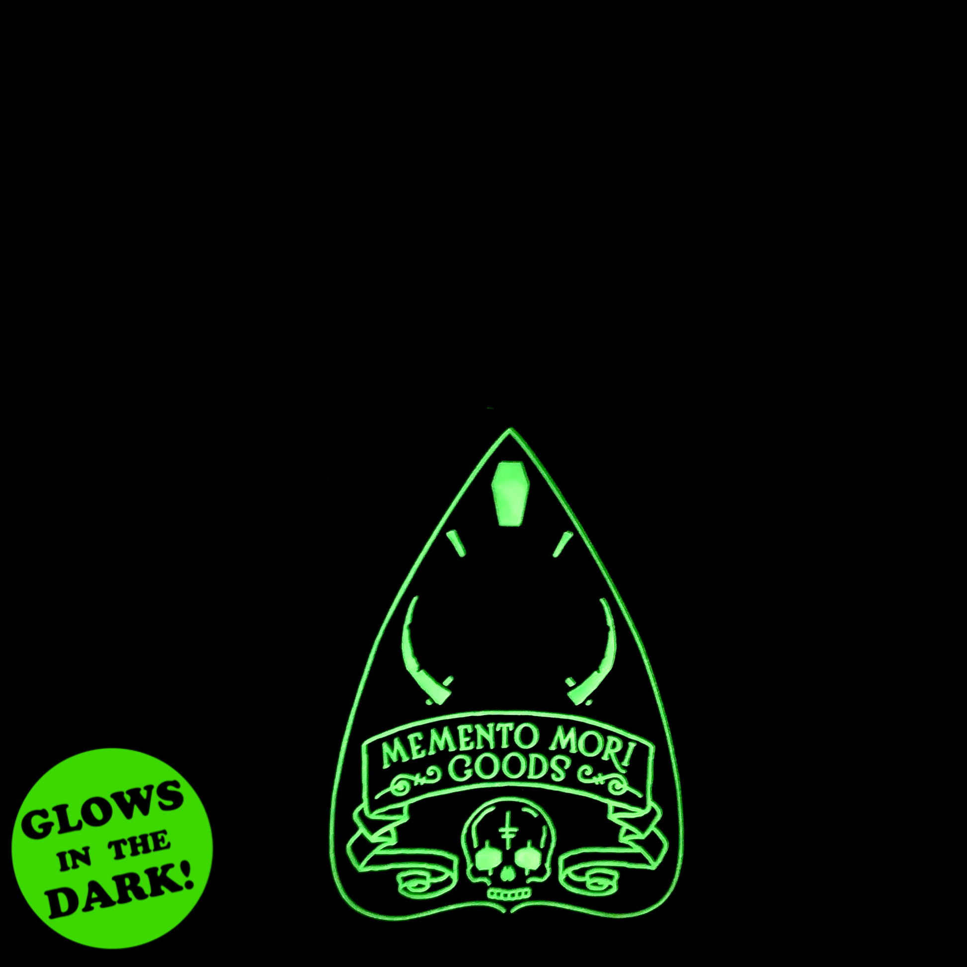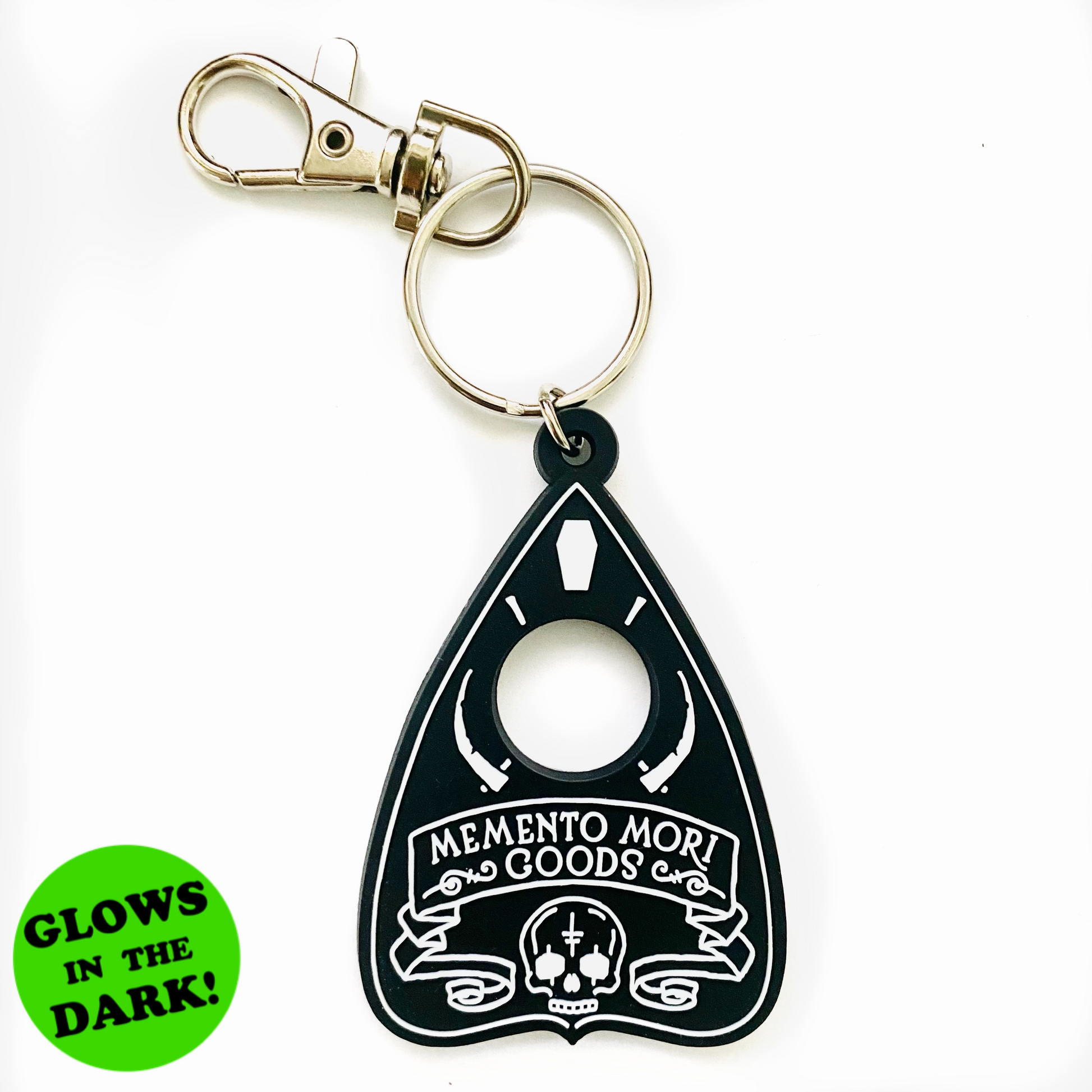 Our logo as a ket chain! Represent your favorite spooky brand! Glow-in-the-dark 2D keychain.