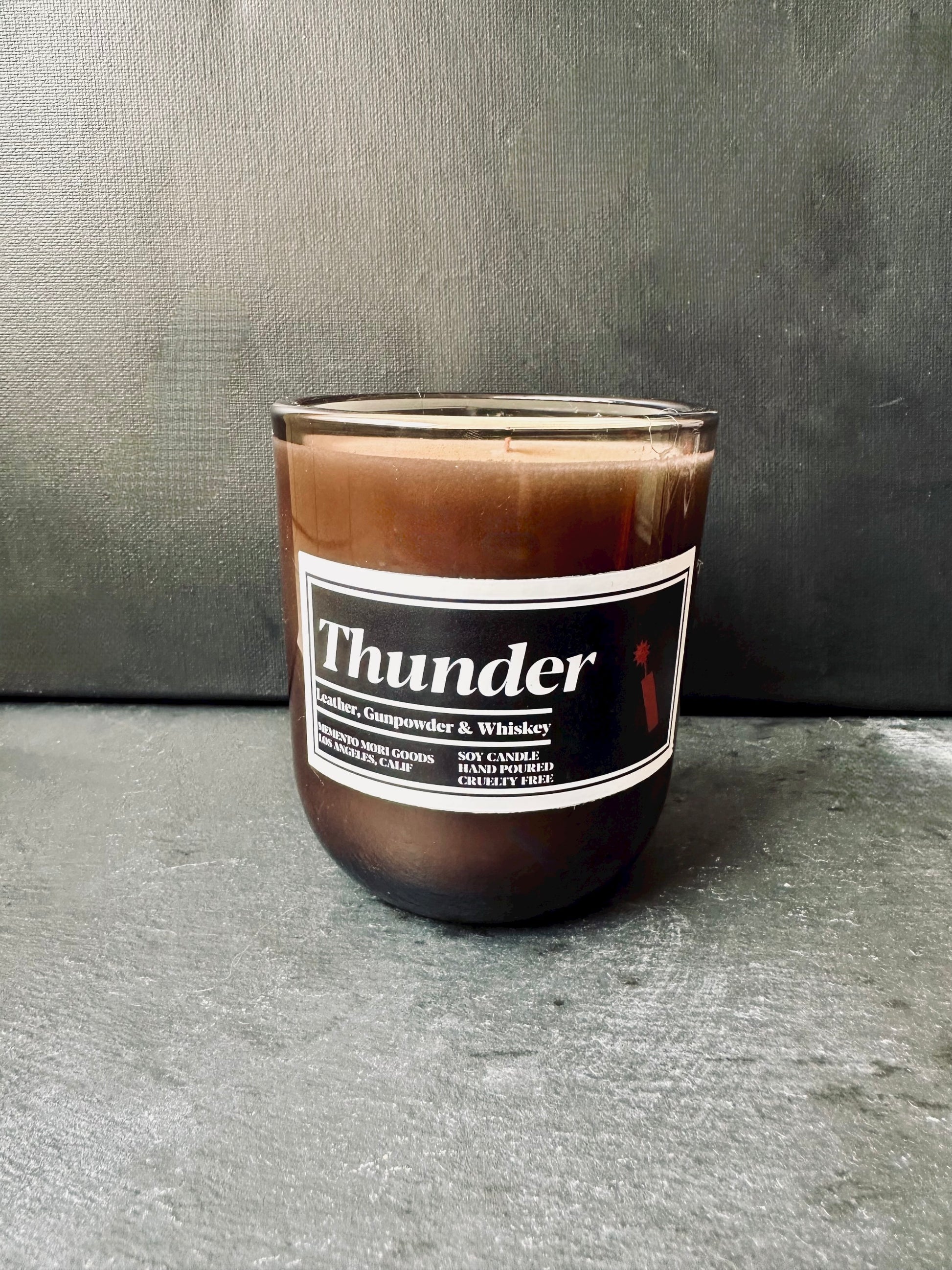 One of our favorite rides in a certain Southern California theme park is the wildest ride in the wilderness. With this candle we wanted to evoke the feeling of the ride. Our "Thunder" candle is Leather, Gunpowder and Whiskey. It's earthy and rustic, it captures the dusty atmosphere of a weathered ghost town saloon.