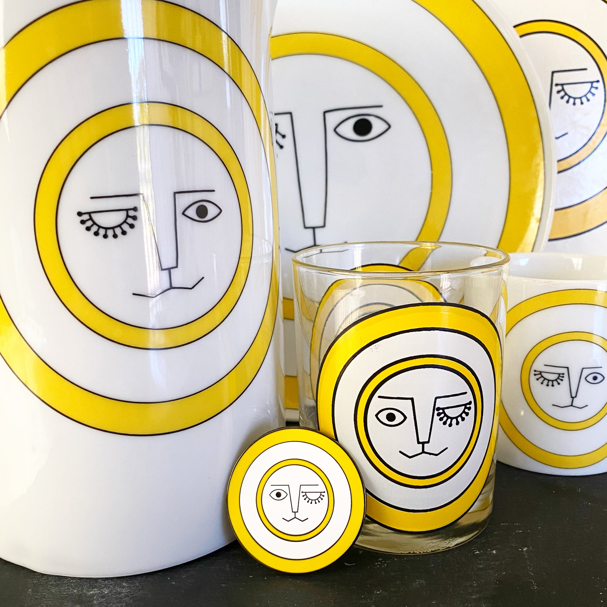 Back in the days of Blogger and Wordpress when everyone had a blog I ran a (now defunct) blog called "The Thrift Collective". It was a collaborative blog where people posted stories about their second hand finds and thrifting adventures. One of my thrift finds was a sweet little glass with a very mod winking sun on it. It had no maker's mark or any information and because of that was very hard (damn near impossible) to search for on ebay or etsy.